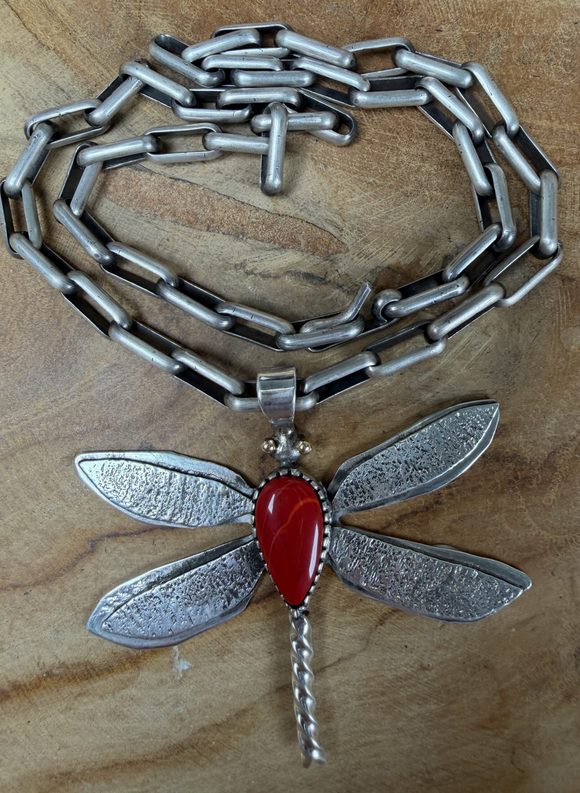 Alvin Yellowhorse 28” heavy link paperclip chain with removable Rosarita dragonfly pendant.